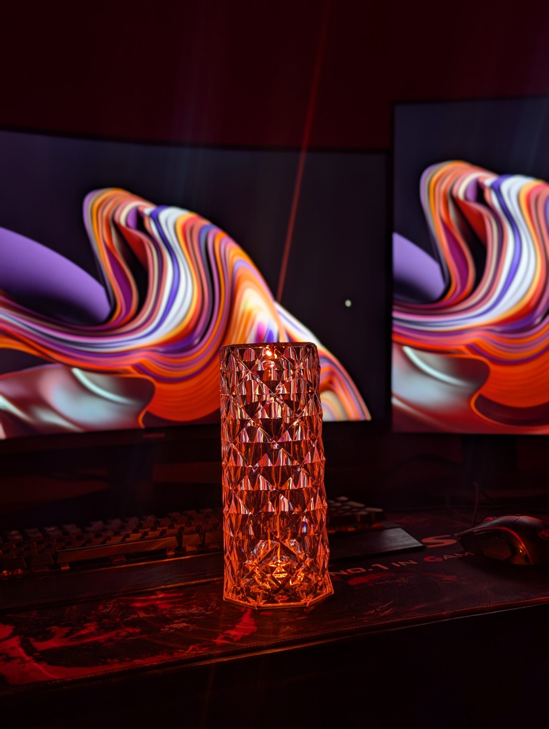 Elevate your ambiance with this elegant LED Crystal Lamp that combines modern design with smart functionality. Crafted with a faceted, diamond-cut surface that refracts light beautifully, this lamp delivers a stunning visual effect. Easily switch between multiple light colors and modes with a simple tap on the touch-sensitive top or by using the included wireless remote. Whether you’re creating a cozy vibe or setting a party mood, this rechargeable lamp offers flexibility and style. With a built-in USB Type-C charging port, it’s both convenient and eco-friendly. Perfect for bedrooms, desks, or dĂ©cor accents.